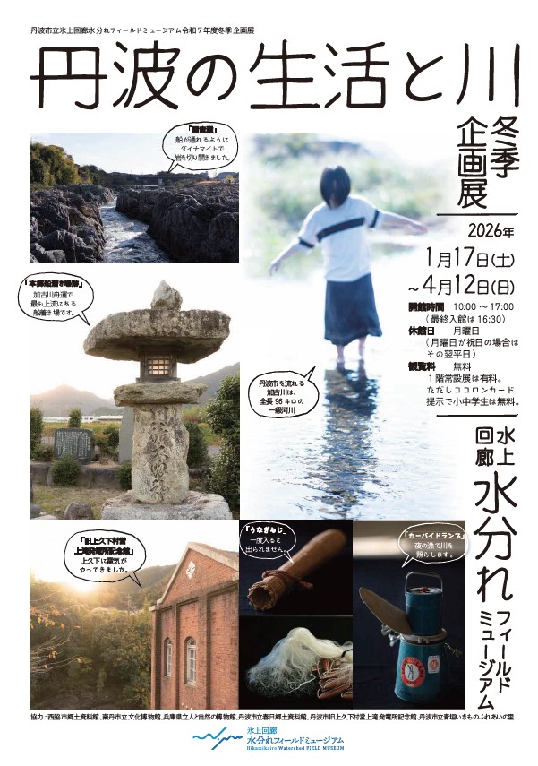 開催場所:丹波市立氷上回廊水分れフィールドミュージアム2階交流ギャラリー 開催期間:令和8年1月17日(土)~令和8年4月12日(日) ※休館日:月曜日(月曜日が祝日の場合は翌平日) 開館時間:10:00~17:00(最終入館は16:30まで) 観覧料:無料 ※1階常設展は有料。ただしココロンカード提示で小中学生は無料 関連イベントは下記URLからご確認ください。 https://www.tamba-hikamikairo.com/fieldmuseum/event/2016/