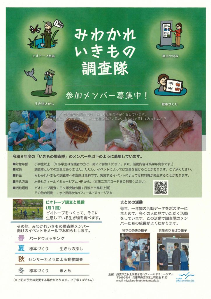 令和8年度 みわかれいきもの調査隊メンバーを募集しています