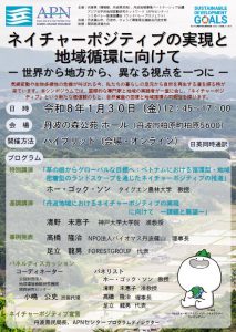 気候変動や生物多様性の危機が注目されるなか、国際的な専門家と地域の実践者が一堂に会する国際シンポジウムです。「ネイチャーポジティブ」という新たな概念を踏まえ、自然資産の回復や地域循環の可能性を議論します。